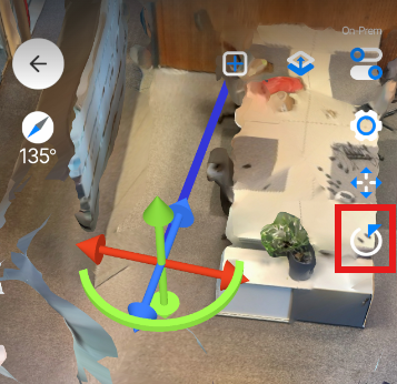 Next, use the rotation gizmo (green circle) to align the model with your real-life point-of-view. Thus, the blue line in the model should point in the same direction as your phone does in real life.