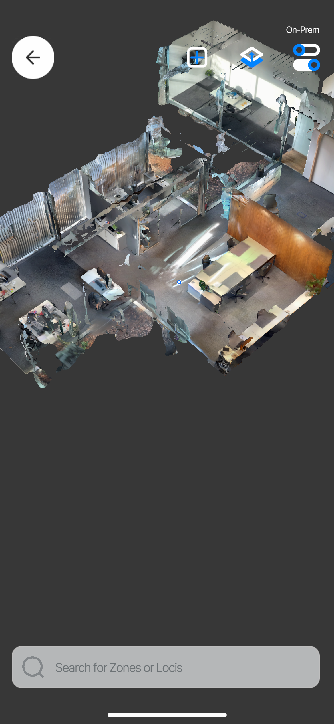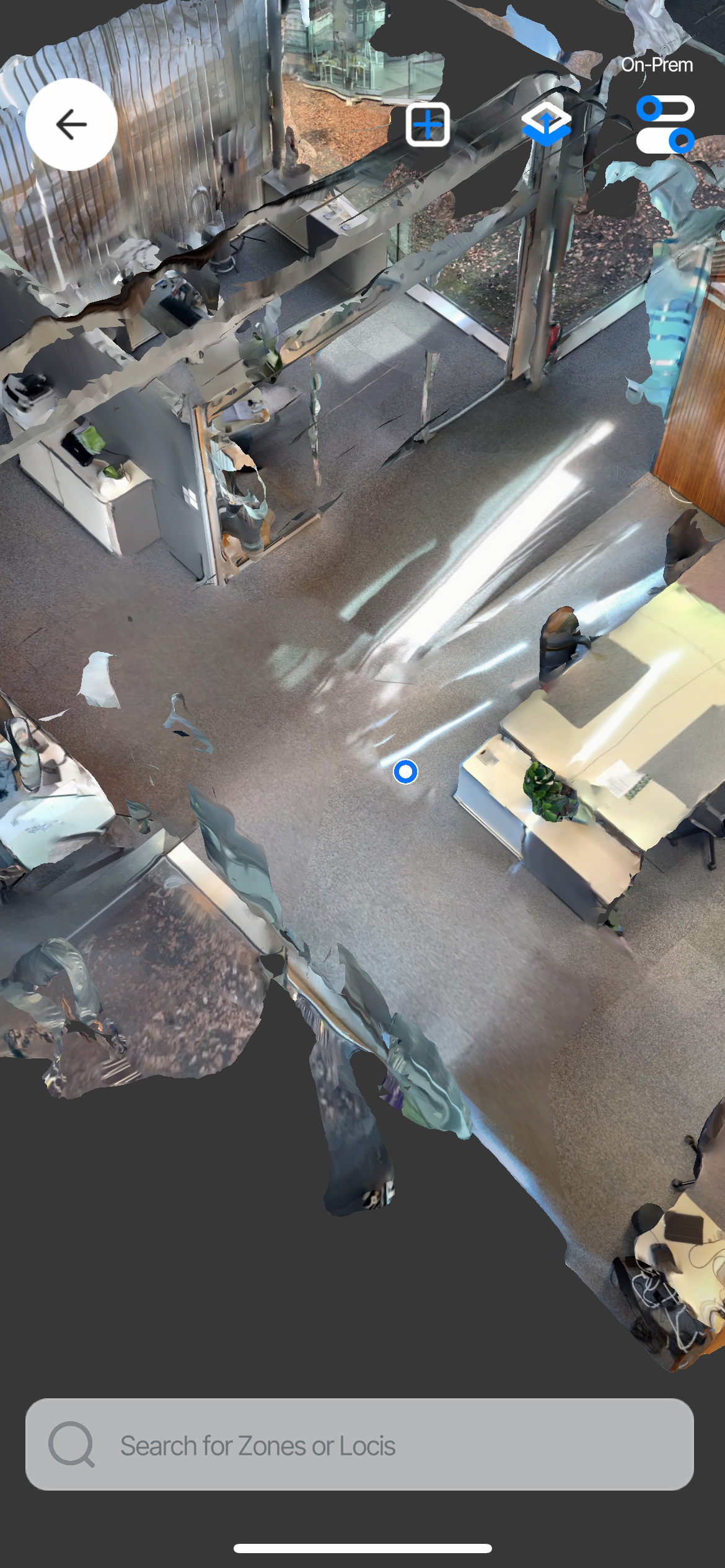 - On-Prem: The app is on the same network (WiFi) as the Edge. The app directly receives the data (position, triggered zones, ...) from the Edge. Therefore the update rate is high and the latency low.